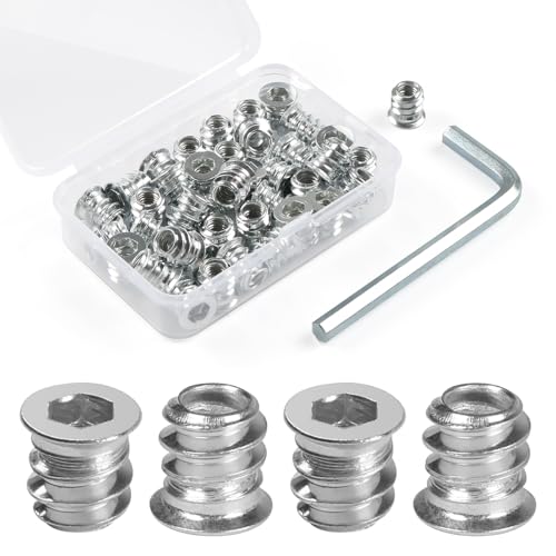 40 stycken inskruvsmuttrar M6 x 25 mm, Leryati gänginsats trä skruvhylsor gänginsatser, zinklegering inskruvshylsa, insexkant, islagsmutter, gängmuttrar för trämöbler
