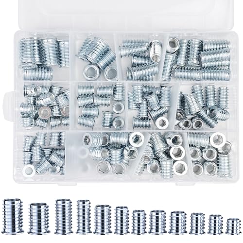 Legpador totalt 130 stycken skruvfoder, gänginsats trä för M6/M8/M10, skruvhylsor, trä islagsmutter, gänginsatssats, gängade bussningar, fackman skruvgänga