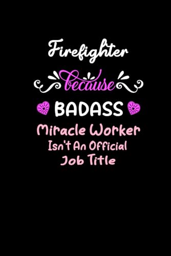 Firefighter Because Badass Miracle Worker Isn't An Official Job Title: Lined Notebook, Funny Coworker Gift Idea