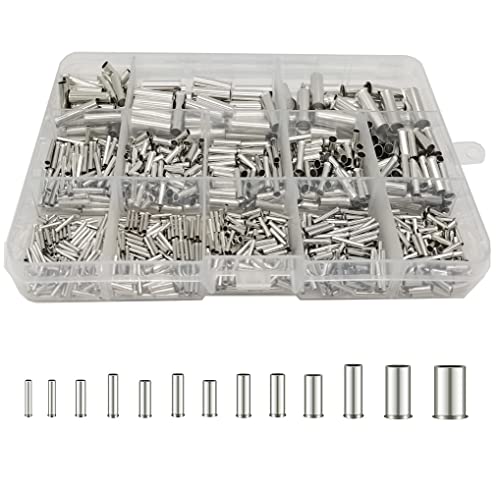 WeqeYent 1 000 st 16 mm2 - 0,5 mm2 trådhylsor kit 6-22 AWG tråd, icke isolerad hylsstift sladd ändterminal 13 typer med låda för gör-det-själv elektriska projekt krympterminaler kit