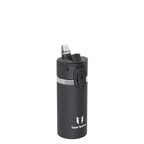 Volhoply Isolerad läckagesäker flaska i rostfritt stål för barn, vattenflaska med vakuum, sugrörslock, silikon, dubbla väggar, BPA-fri, enkel användning för pojkar och flickor (svart, 1)
