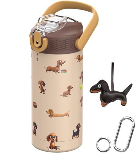 MYFOREST 400ml isolerad vattenflaska för barn, luktfri kirurgisk innerflaska, diskmaskinssäker, namnprick, mjuk sippra (Beige. Taxar)