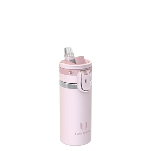 Volhoply Isolerad läckagesäker flaska i rostfritt stål för barn, vattenflaska med vakuum, sugrörslock, silikon, dubbla väggar, BPA-fri, enkel användning för pojkar och flickor2-pack (rosa-grön, 2)