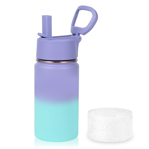 Volhoply Isolerad läckagesäker flaska i rostfritt stål för barn, vattenflaska med vakuum, sugrörslock, silikon, dubbla väggar, BPA-fri, enkel användning för pojkar och flickor (lavendelblå, 1)