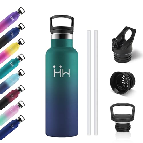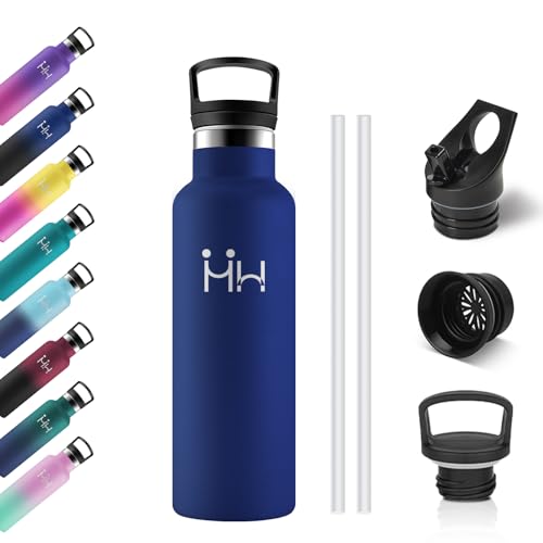 Volhoply Isolerad vattenflaska i rostfritt stål för barn, 532 ml, med sugrörslock, brett munstycke, återanvändbar metallflaska, dubbla väggar, vakuum, flaska för sport, resor, kallt dryck (fog, 1 set)