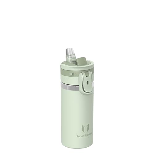 Volhoply Isolerad läckagesäker flaska i rostfritt stål för barn, vattenflaska med vakuum, sugrörslock, silikon, dubbla väggar, BPA-fri, enkel användning för pojkar och flickor (grön, 1)