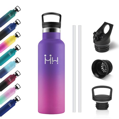 Volhoply Isolerad vattenflaska för barn, 532 ml, rostfria med lock och sugrör, dubbelväggig vakuumflaska i metall, återanvändbar, med vid öppning för kalla drycker (lila/blå, 1 set)
