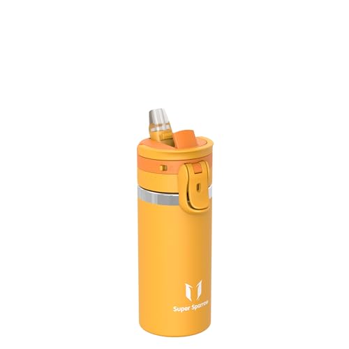 Grsta Termisk flaska, 500 ml, vattenflaska för barn, anpassad vattenflaska, BPA-fri, metallflaska, läckagefri, isolerad vattenflaska, vattenflaska för skola, kontor, sport, resor, gul