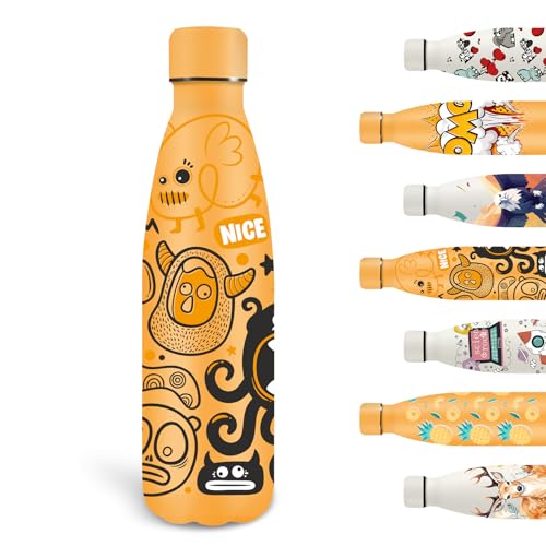 HoneyHolly Termisk flaska, 18/8 rostfritt stål Termisk Flaska - 350 ml/500 ml/750/1 000 ml - BPA-fri vattenflaska på gymmet, isolerad, droppsäker, termosflaska, för barn, skola