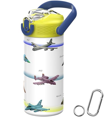 Volhoply Isolerad läckagesäker flaska i rostfritt stål för barn, vattenflaska med vakuum, sugrörslock, silikon, dubbla väggar, BPA-fri, enkel användning för pojkar och flickor, 2-pack (blandad, 2)