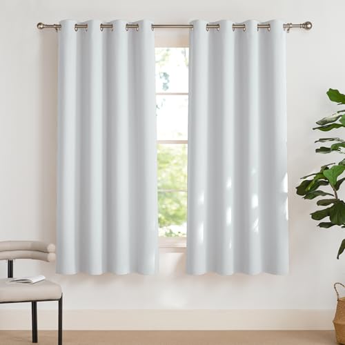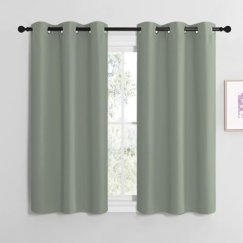 Nicetown Gardin salviagröna gardiner ogenomskinliga korta gardiner med öljetter set om 2 gardiner vardagsrum moderna korta mörkläggningsgardiner termiska gardiner isolerande kyla och värme, H 137 x B