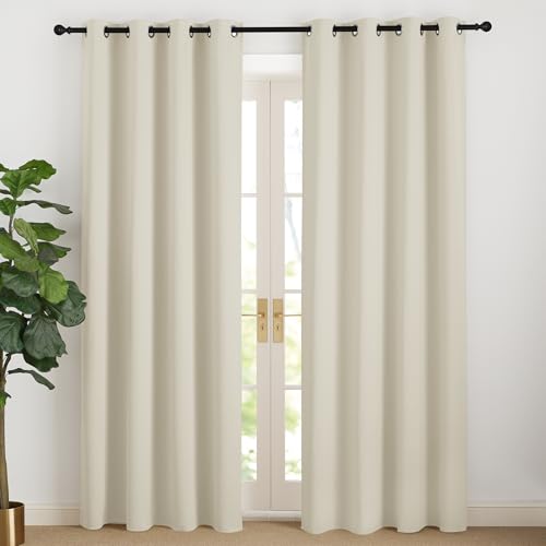 Nicestown Beige gardin ogenomskinlig gardin isolerande köldskydd gardiner 200 cm lång mörkläggningsgardin öljetter gardiner vardagsrum moderna gardiner öljettskynke set om 2, ljusbeige H 200 x B 140