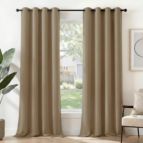 Deconovo Gardiner, öljettgardiner för sovrum, ogenomskinlig gardin, termogardiner mot kyla, termogardiner isolerande mot kyla, 300 x 140 cm (längd x bredd), beige, set om 2