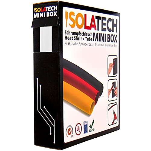 ISOLATECH krympslang 3:1 set med klister svart Ø6,4 mm 5 meter för kablar USB elektronik fordonstillbehör isolering UV-beständig reparation omärkt rulle i praktisk dispenserbox