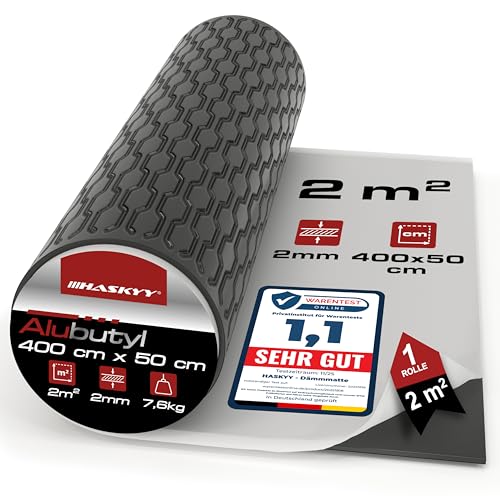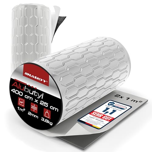 HASKYY 2 mm 2 kvm aluminiumbutyl antidrön, isoleringsmatta självhäftande bilisolering – bil bullerskydd, ljudisolering och ljudisolering –