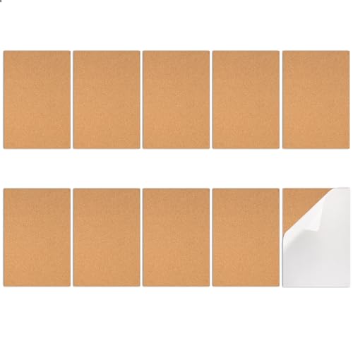 10 stycken självhäftande korkplattor, 30 x 21 cm anslagstavla, kork, 1 mm tjock korkskiva, självhäftande gör-det-själv anslagstavla, rektangulära isoleringsplattor för pyssel, kontor, skola, kök,