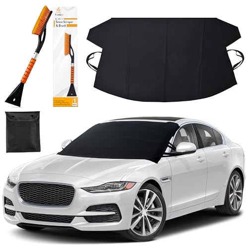 EcoNour snöskydd för vindrutor, standard (175 x 102 cm) med isskrapa och borste för vindruta | repfritt borsthuvud för bilar, lastbilar, SUV:ar | bilsnökit för rengöring | vinterbiltillbehör