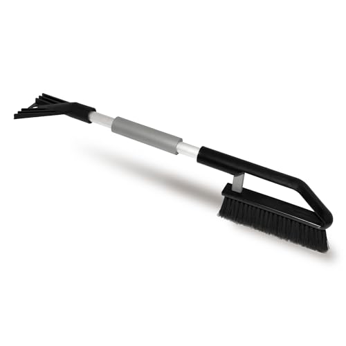 ToM PaR Borste och skrapa | Utdragbar teleskopstång | Ergonomiskt, mjukt grepp | Isskrapa för bil med kvast | 2-i-1 Snörborste och isskrapa | Rengöringsborste | Längd: 82-110 cm | Grå