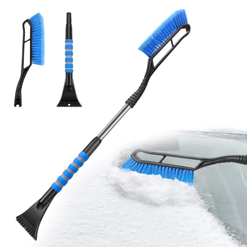 SEAAES Isskrapa med snöborste för bil vindruta, uppgraderad utdragbar snöborste med skumgrepp för lastbil SUV-fordon fönster