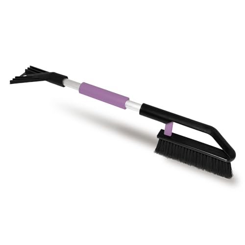 ToM PaR Borste och skrapa | Utdragbar teleskopstång | Ergonomiskt, mjukt grepp | Isskrapa för bil med kvast | 2-i-1 Snörborste och isskrapa | Rengöringsborste | Längd: 82-110 cm | Rosa