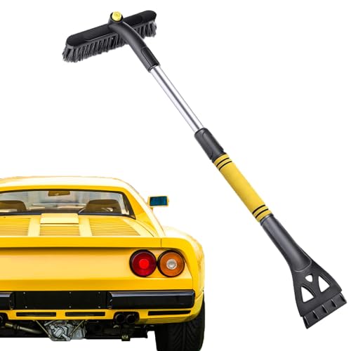 FINEVERNEK Isskrapa för bil, med borste, multifunktionell 3-i-1-snöborste, infällbar isskrapa för bil, med 360° vridbart borsthuvud, 86 cm lång snöskyffel med skumhandtag