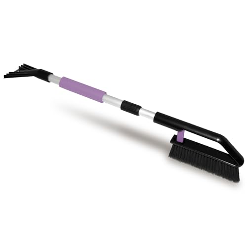 HEEYA Snöborste för bil, utdragbar snöborste och isskrapa för SUV-vindrutefönster, bilsnöskrapa och borste med skumgrepp för lastbil bil fordon – rosa