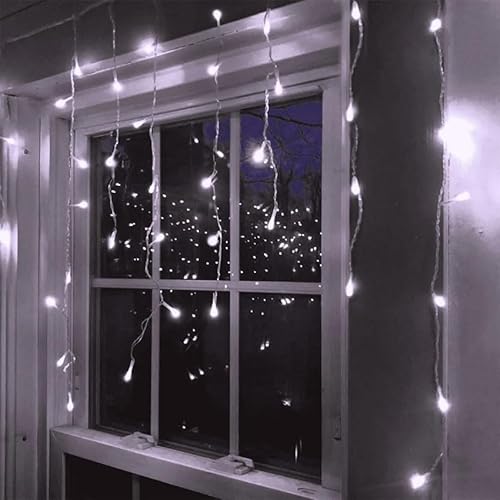 PhilzOps Julbelysning utomhus 480 LED, 19 m, isregn, ljuskedja, kall vit, ljusgardin, istapp, jul, dekoration, vattentät, strömdriven belysning för julgran, fest, bröllop, vinter