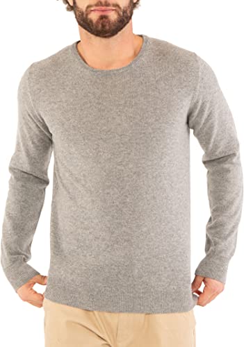 Marine Cashmere - Tröja med rund hals i ren kashmir för män, delikat och mjukt 100 % kashmirgarn, tillverkad i Italien, Porfyri, M
