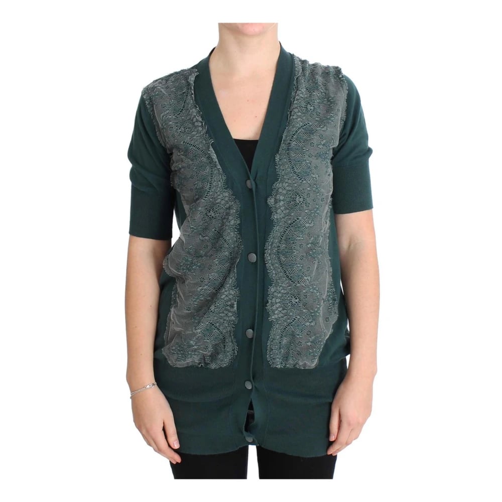 Pink Memories, Stickade Tröjor , Dam, M, Bomull, Grön Spets Cardigan Tröja Tillverkad i Italien