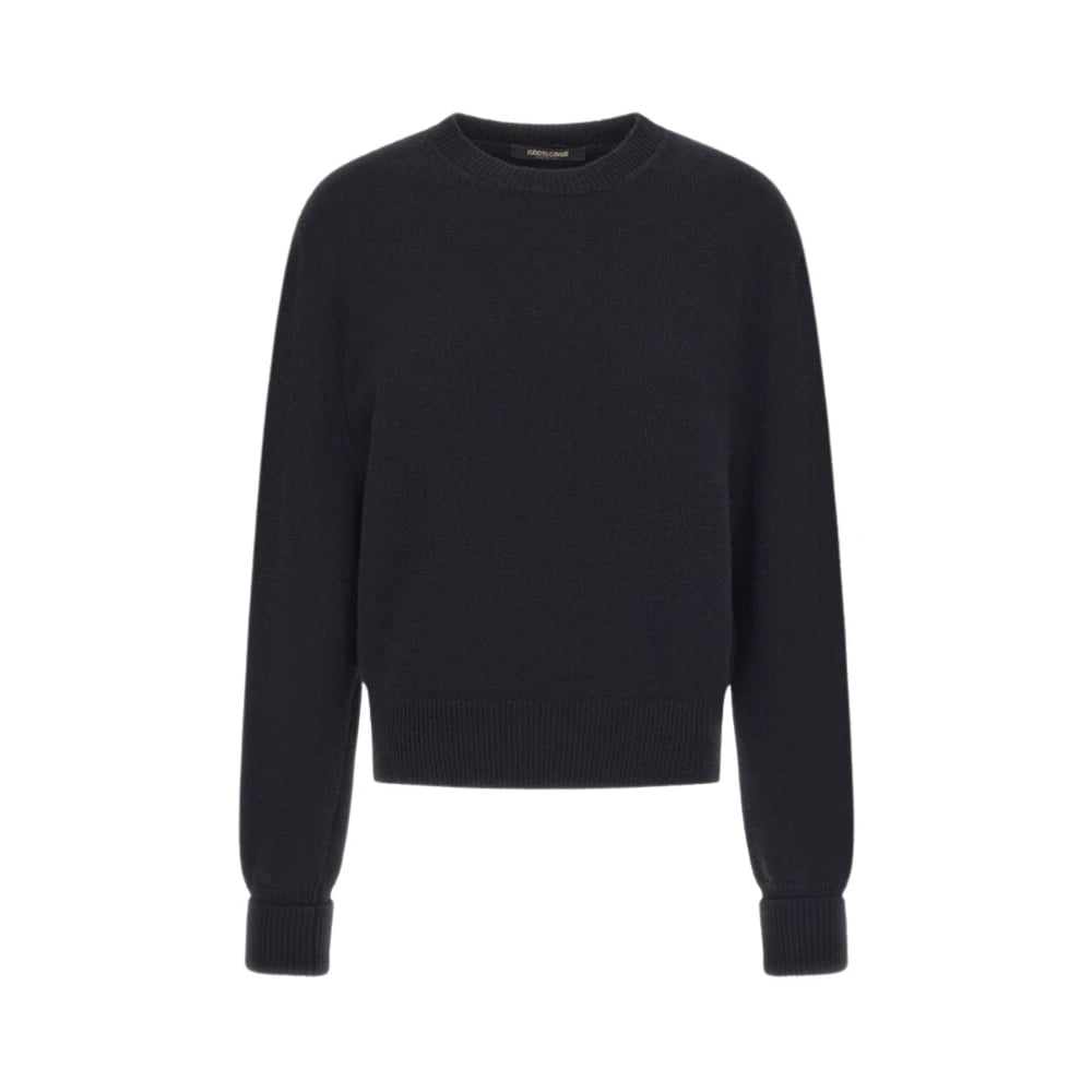 Roberto Cavalli, Stickade Tröjor , Dam, XS, Svart Stickad Tröja Tillverkad i Italien