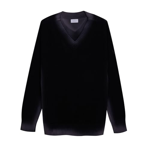 Diana Studio - Handdriven airbrushed V-ringad tröja, herr, 100% linne, långärmad, avslappnad passform, tillverkad i Italien, Svart, XL