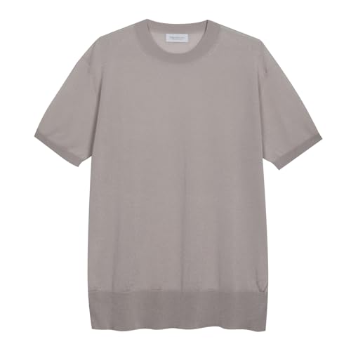 Diana Studio - T-shirt i tröja, herr, 100% Lyocell, kortärmad, ledig passform, tillverkad i Italien, Beige, XL