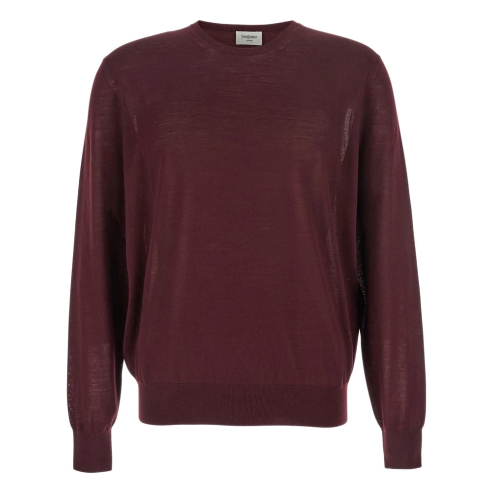 Saint Laurent, Stickade Tröjor , Herr, L, Röd Ull Crewneck Tröja Italien Tillverkad