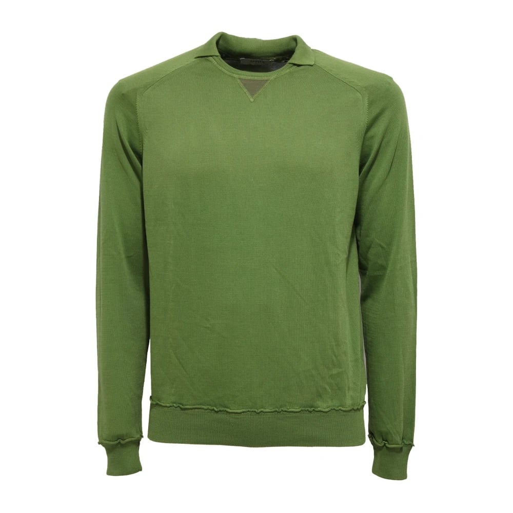 Gallo, Stickade Tröjor , Herr, L, Bomull, Herr rundhalsad tröja tillverkad i Italien av grön strumpstickad bomullstyg