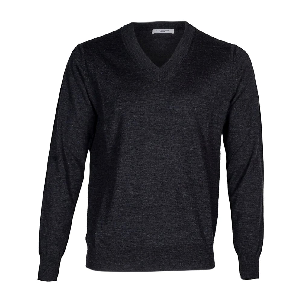 Paolo Pecora, Stickade Tröjor , Herr, L, Herr ull V-ringad tröja tillverkad i Italien