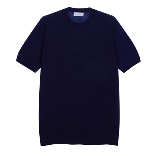 Diana Studio - T-shirt i tröja, herr, 100% Lyocell, kortärmad, ledig passform, tillverkad i Italien, Marinblå, XL