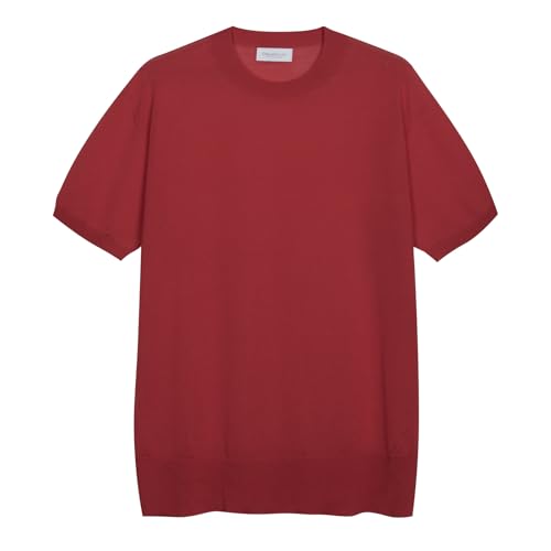 Diana Studio - T-shirt i tröja, herr, 100% Lyocell, kortärmad, ledig passform, tillverkad i Italien, Röd, XL