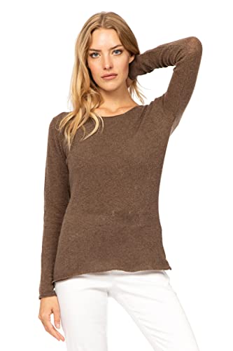 Marine Cashmere - Tröja med rund hals av 100 % kashmir för kvinnor, tillverkad i Italien, O-hals, inklusive presentförpackning, Murmeldjur, S