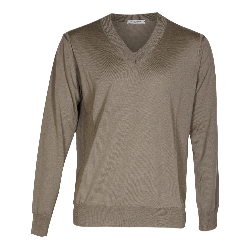 Paolo Pecora, Stickade Tröjor , Herr, M, Herr V-ringad Ulltröja Tillverkad i Italien