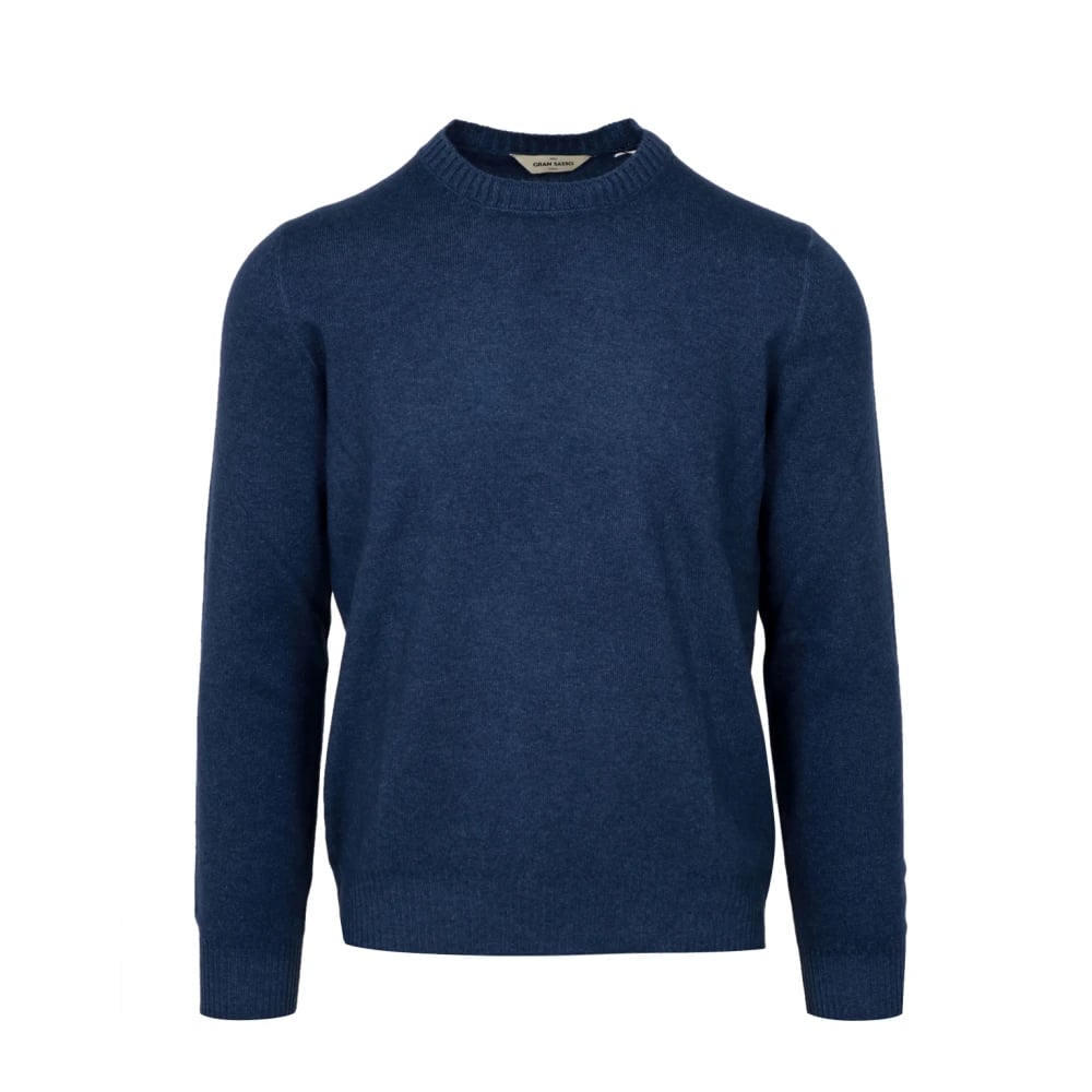 Gran Sasso, Stickade Tröjor , Herr, S, Italiensk plaggfärgad ull-cashmere tröja med rund hals