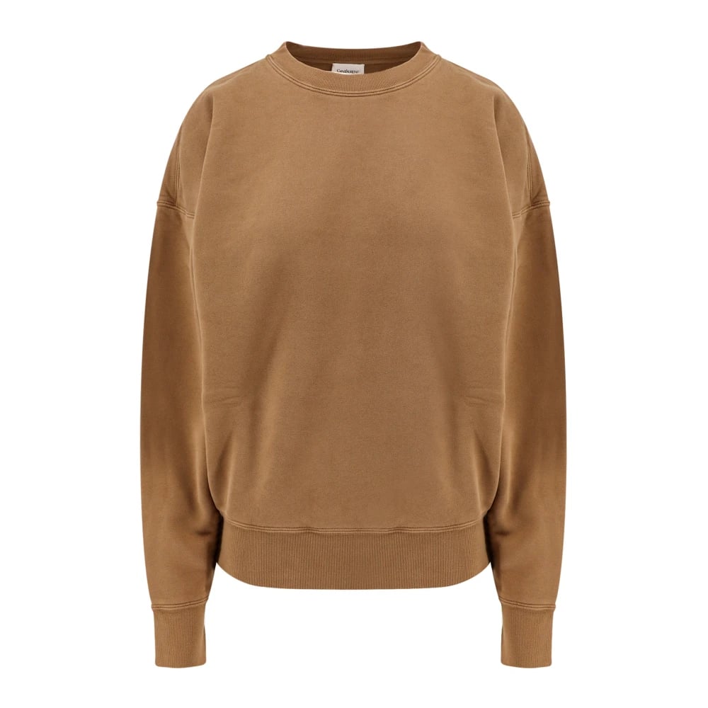 Saint Laurent, Sweatshirts & Hoodies , Dam, S, Bomull, Brun Ribbstickad Tröja Italiensk Bomull