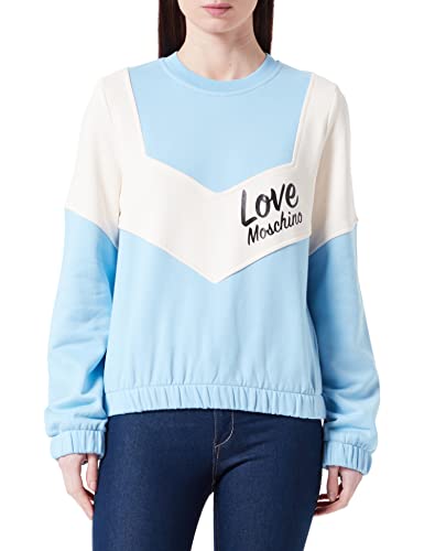 Love Moschino Långärmad tröja för kvinnor, rund hals, kontrasterande färginsatser och italiensk logotyp, himmelsblå/vit, 46, Himmelblå/vit, 46