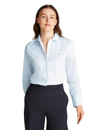 Tommy Hilfiger dam ESS POPLIN normal skjorta WW0WW47169 L/S skjorta, blå (klassisk Ithaka STP Breezy Blue), 36, Blå (klassisk Ithaka Stp Breezy blå), 62