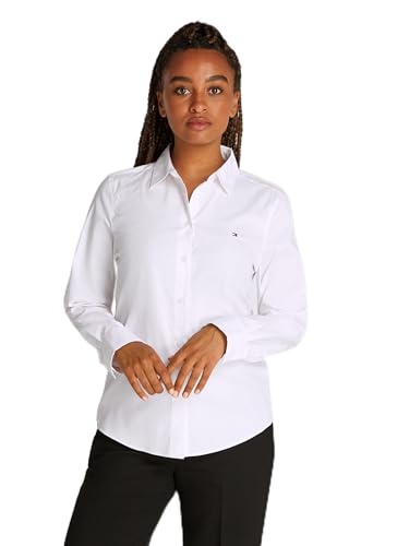 Tommy Hilfiger dam ESS POPLIN normal skjorta WW0WW47169 L/S skjorta, blå (klassisk Ithaka STP Breezy Blue), 42, Blå (klassisk Ithaka Stp Breezy blå), 68