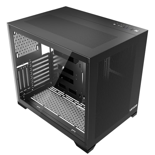 VEVOR Mid-Tower PC-fodral, dubbelkammare, speldatorfodral med härdat glaspaneler, magnetiskt dammfilter, kabelhantering, för GPU upp till 410 mm i längd, kompatibel med ATX/M-ATX/ITX, ingen fläkt