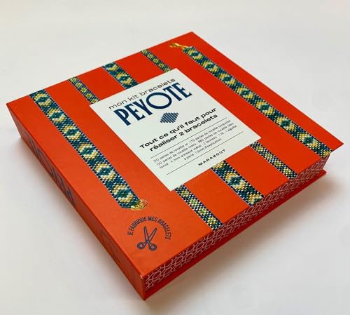 Mon kit bracelets Peyote: Avec des perles de rocaille or, turquoise, ivoire et bleu foncé, des mini anneaux en métal, des fermoires, un fil, des aiguilles à perle et un livret d'explication: 31627