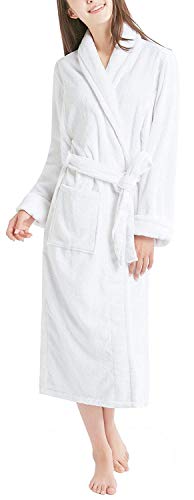 INK+IVY Soft Kimono Robes for Women Terrycloth Ladies Bathrobe with Pocket and Belt, Collar & Cuff Trim, White L/XL