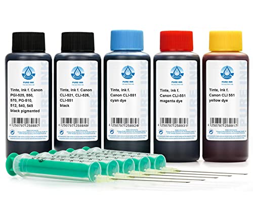 500 ml påfyllningsbläck, skrivarbläck kompatibelt med Canon PGI-550, CLI-551 skrivarkassetter, för Pixma IP 7200-serien, IP 7250, IP 8700-serien, IP 8750, IX 6800-serien, IX 6850, bland andra, ingen
