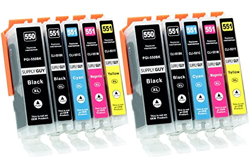 Supply Guy 10 bläckpatroner met chip kompatibel med Canon PGI-550 CLI-551 för Pixma IP7250 IX6850 MG5450 MG5550 MG5650 MG5655 MG6450 MG6650 MX725 MX925
