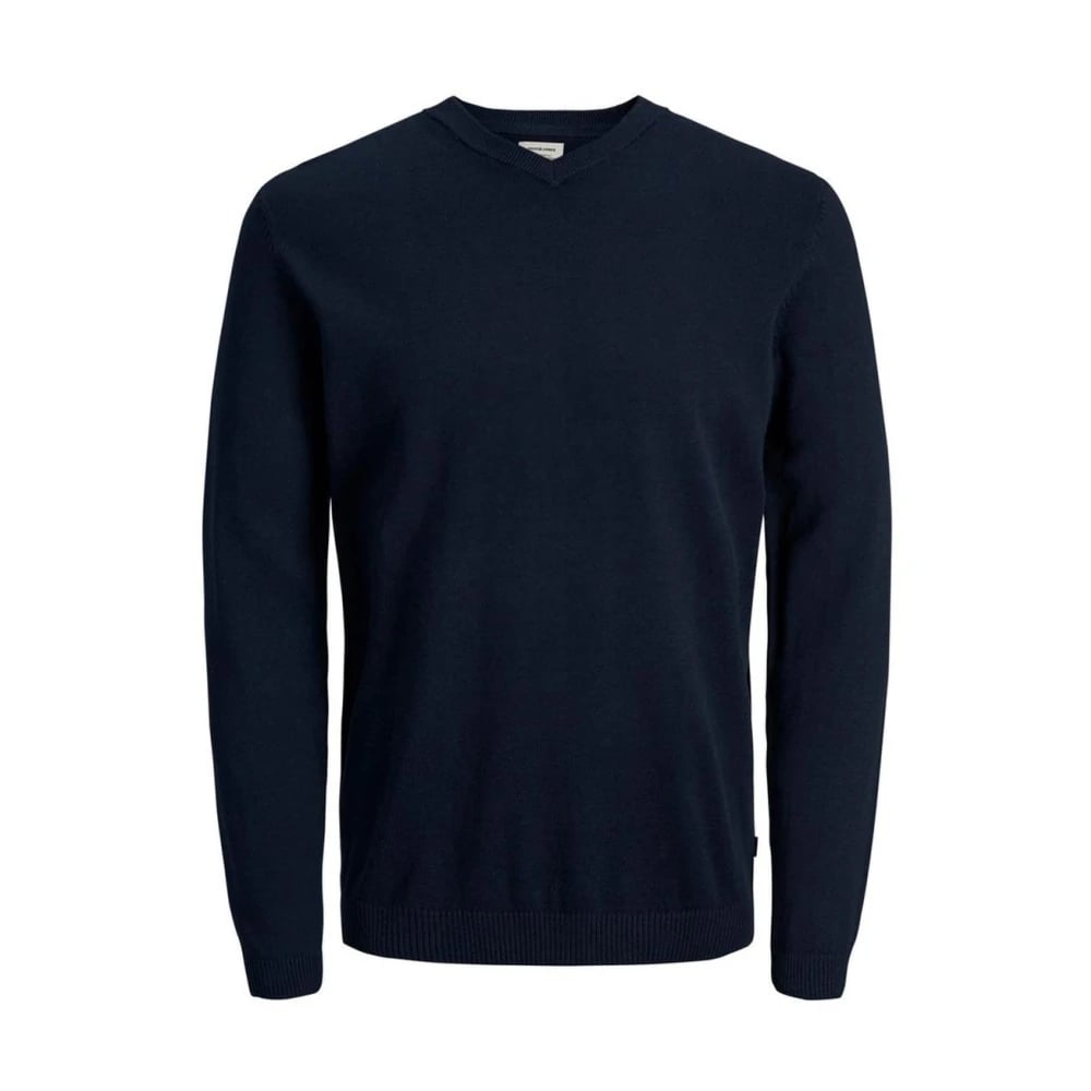 Jack & Jones, Stickade Tröjor , Herr, L, Bomull, Basis V-Hals Bomullströja
